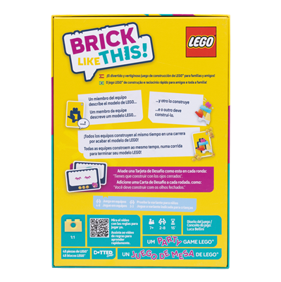 En Brick Like This! los equipos compiten para construir modelos con piezas de LEGO®. Después de seis rondas, ¡gana el equipo con más puntos!