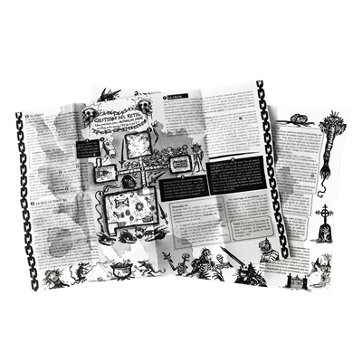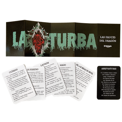 Una mini pantalla con el suplemento La turba. Para jugar aventuras tipo turba, donde cada jugador interpreta de 2 a 4 PJ de nivel 0. Incluye una minimísima tabla para decidir la especie del PJ y dos tablas d66 para determinar la profesión de cada personaje y dos objetos que posee. Podrás crear tu propia «Tumba de los Horrores» y enfrentarte a ella con una turba. Sobrevivir será difícil, pero altamente adictivo.