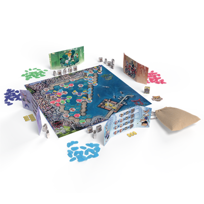 Nyakuza es un juego competitivo para 2-4 participantes en el que intentarás erigir tu imperio pesquero.