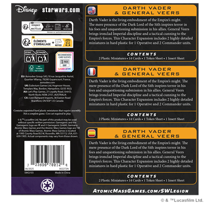 Darth Vader es la encarnación viviente del poder del Imperio. La mera presencia del lord oscuro de los sith infunde terror en sus enemigos y una obediencia incuestionable en sus aliados. El general Veers aporta su férrea disciplina imperial y su astucia táctica a las fuerzas del Imperio.